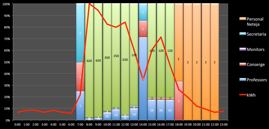 D’altra banda, pel que fa a la gestió energètica de qualsevol edifici, és fàcilment constatable que el comportament dels usuaris que el freqüenten habitualment i fan ús de les seves instal·lacions, té un impacte molt important sobre el consum dels recursos i de l'energia.